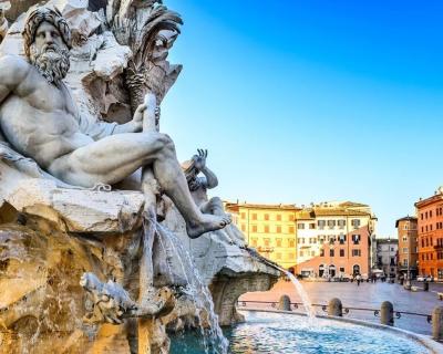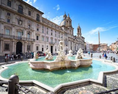 - Площадь Навона, где вас восхитит фонтан Четырёх рек, а я расскажу о соперничестве Бернини и Борромини.