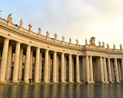 - Площадь Святого Петра — любуясь масштабной колоннадой со скульптурами, вы узнаете о работе великих мастеров — от Микеланджело до Бернини — над великолепным собором Сан-Пьетро.