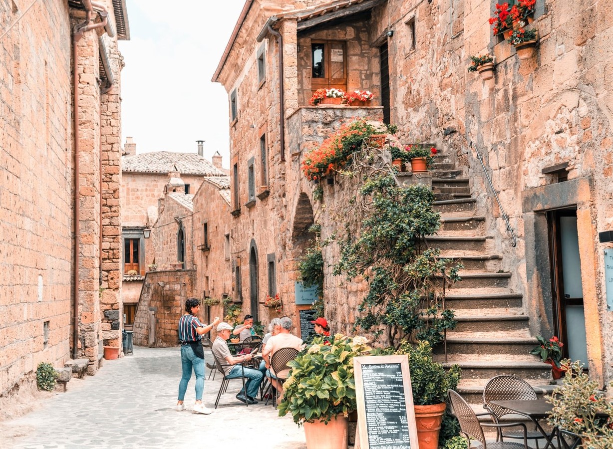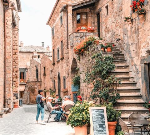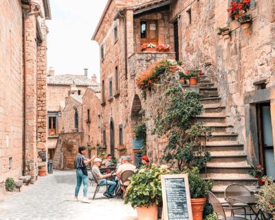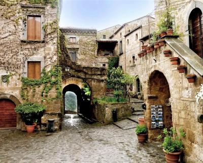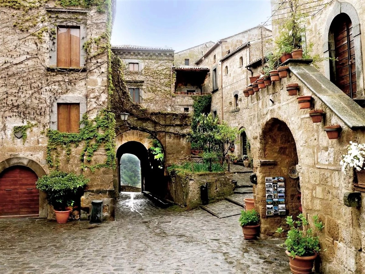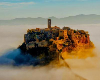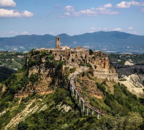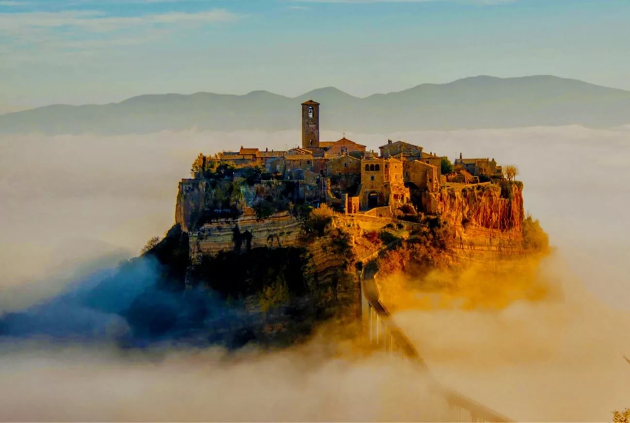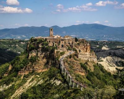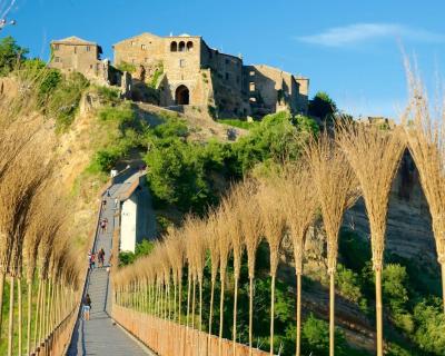 Затем мы неспешно отправимся в город Чивита ди Баньореджо, или «Умирающий город», как его называют сами итальянцы. Баньореджо возвела цивилизация этрусков около 2500 тысяч лет назад, а сейчас он находится на границе регионов Лацио и Умбрии. Город стоит на туфовой скале среди зелёной долины — попасть туда можно только через мост длиной 300 метров. Это единственный путь сообщения между Чивита ди Баньореджо и «цивилизацией»! Благодаря своей затерянности и изоляции, город сохранил аутентичный облик.