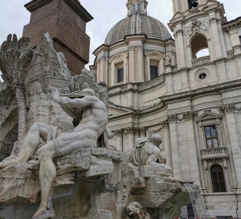 - Площадь Навона на месте античного стадиона, где сейчас находится фонтан Четырёх рек