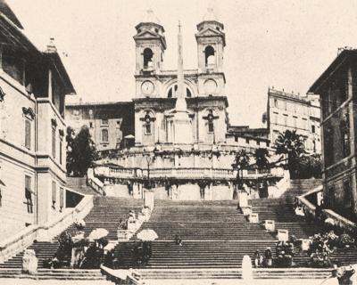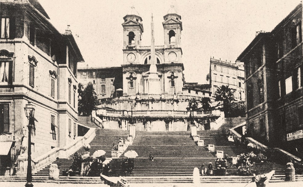 а в другом доме, совсем рядом с площадью, Гоголь жил во время написания «Мёртвых душ». Дальше мы дойдем до церкви Тринита деи Монти и спустимся по великолепной Испанской лестнице до площади внизу. Этой лестницей Гоголь ходил неоднократно. Наверняка он останавливался освежиться у фонтана Баркачча.